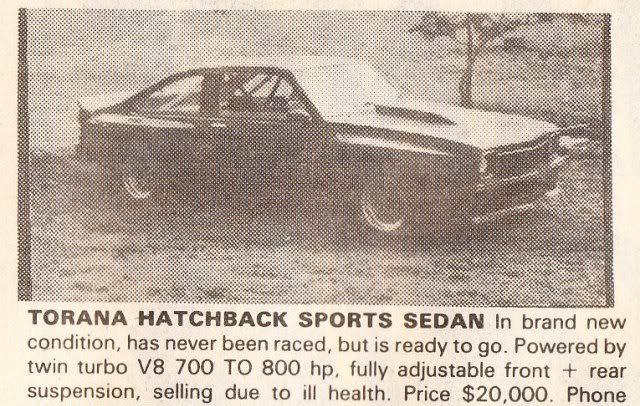 The Hazleton Monaro is an interesting beast.... Was that the car Michael Tannahill (spelling) ran in 1989 in the Vic State Series... Im going by memory only but it was white with big flares and i think a wing.....