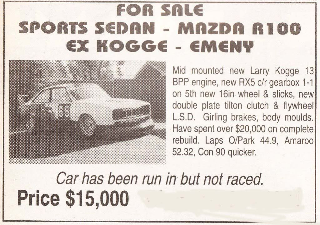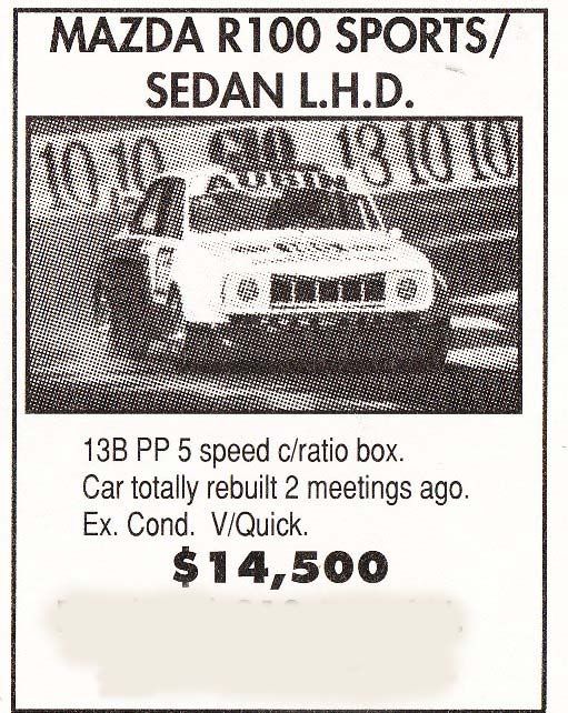 I remember the car as a kid, i remember the first time i heard it and quickly grabbing at my ears, it was so loud, great find. I also remember another R100 of similar looks that a guy with a Japanese name was driving i dont think it is the same car. Paint was red, green and white. Photo courtesy of Old Race Photos Neville Cherry at Baskerville Tasmania in 1977