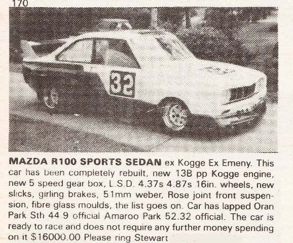 Dont know of to many R100's that ran as sports sedans but found these photos of an R100.....maybe the same car. What i did notice on all the photos above is how the guards have changed.