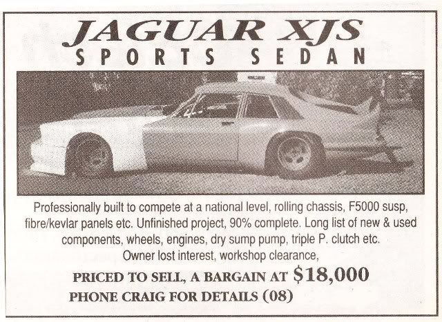 2) Trenoweth's Colourbond Jag (Fluro orange) that debuted at E'Creek in the early 90's and then became Roddy's car,