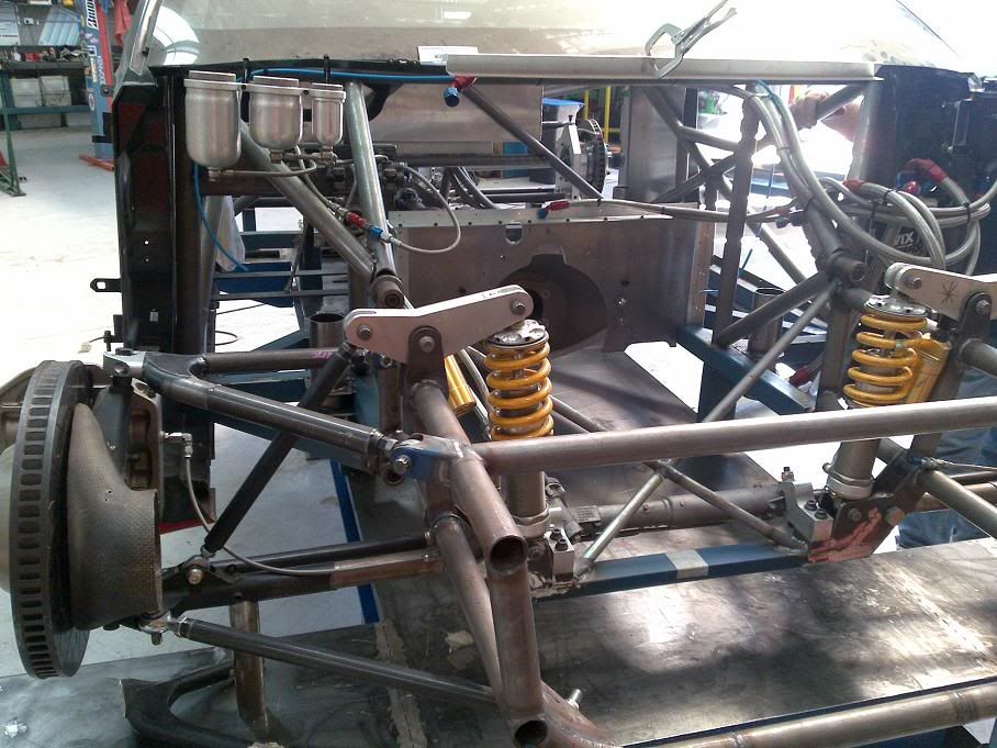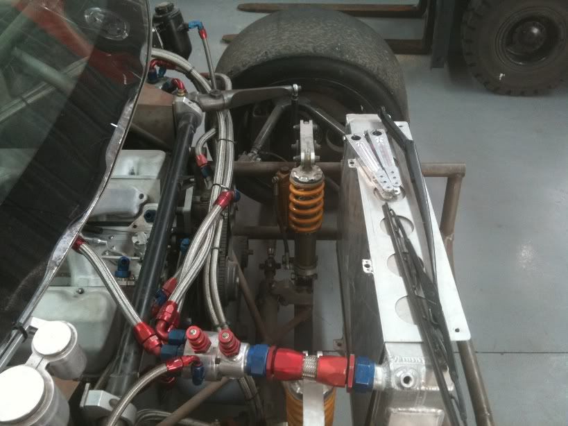 The rear coil overs are lying flat on the floor, must have an interesting set of links to the rear uprights, would love to see a pic of that next time.