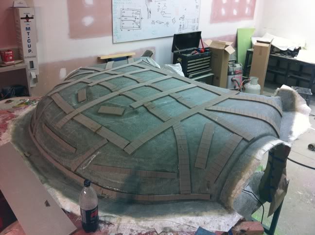 Screws and sticky tape. The shape has then been refined with bog (lots of it)